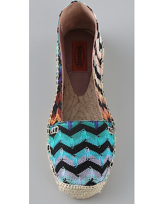 Missoni Espadrilles! This is our second time writing about these fabulous espadrilles in the iconic Zig Zag pattern. They’re so fabulous for summer and love their typical color selection…turquoise, cognac, peach and black.These zigzag-striped knit espadrilles feature woven jute trim. I’d start shopping right now and click the link to indulge! My daughter just bought them, of course! shopbop.com Pair with capris, shorts, skirts, jeans…basically everything you own!