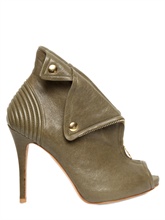 Looking for the ultimate ankle booties to wear with leggings, skinny jeans or pencil skirts? Look no further! Alexander McQueen’s calf leather ankle booties are edgy and ever-so cool! We love the design, attention to detail and the fashion forward style. McQueen’s Leather Faithful Boots feature gold tone hardware, a peep toe, a front gold zip closure and a leather covered heel.
