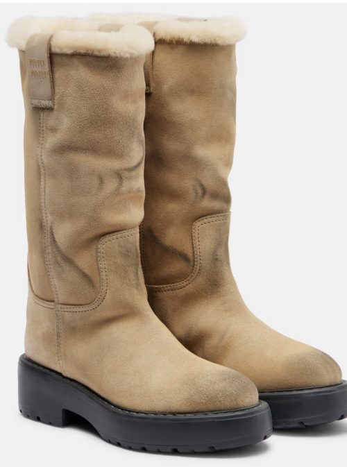 Miu Miu Embellished Shearling Ankle Boots